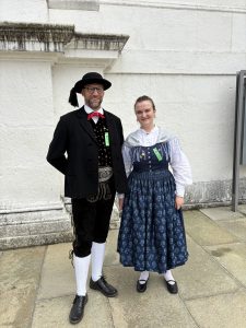 Die Tracht, die man rechts auf dem Foto sieht, ist eine erneuerte Budweiser Tracht.